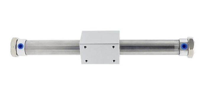 无杆气缸是指利用活塞直接或间接方式连接外界执行机构,并使其跟随活塞实现往复运动的气缸。一般分为磁耦合式无杆气缸与机械式无杆气缸。